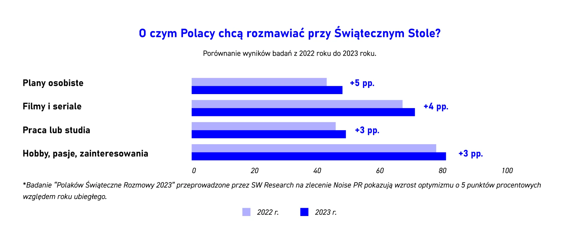 Już po raz drugi Agencja Noise PR, wspólnie z Agencją Badań Rynku SW Research, postanowiła sprawdzić o czym najchętniej będziemy chcieli rozmawiać z bliskimi w Boże Narodzenie 2023 r., a jakich tematów unikać.